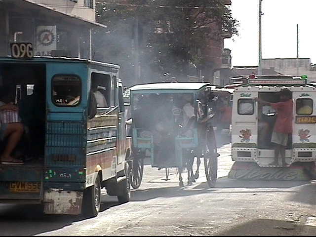ジプニーの排気ガスに馬の顔も歪んでいました