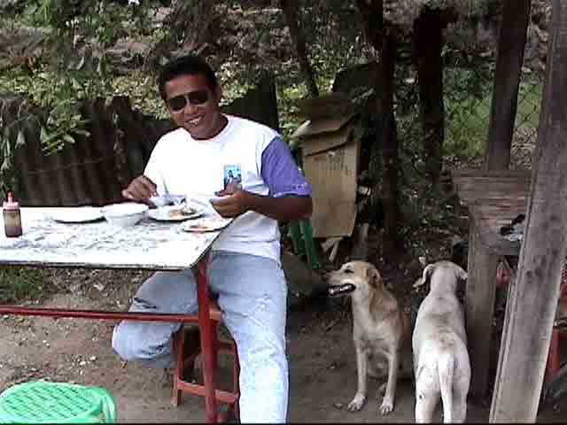 タクシー運転仕事の合間の昼休みの楽しい昼食(一緒にどう? と笑顔で)